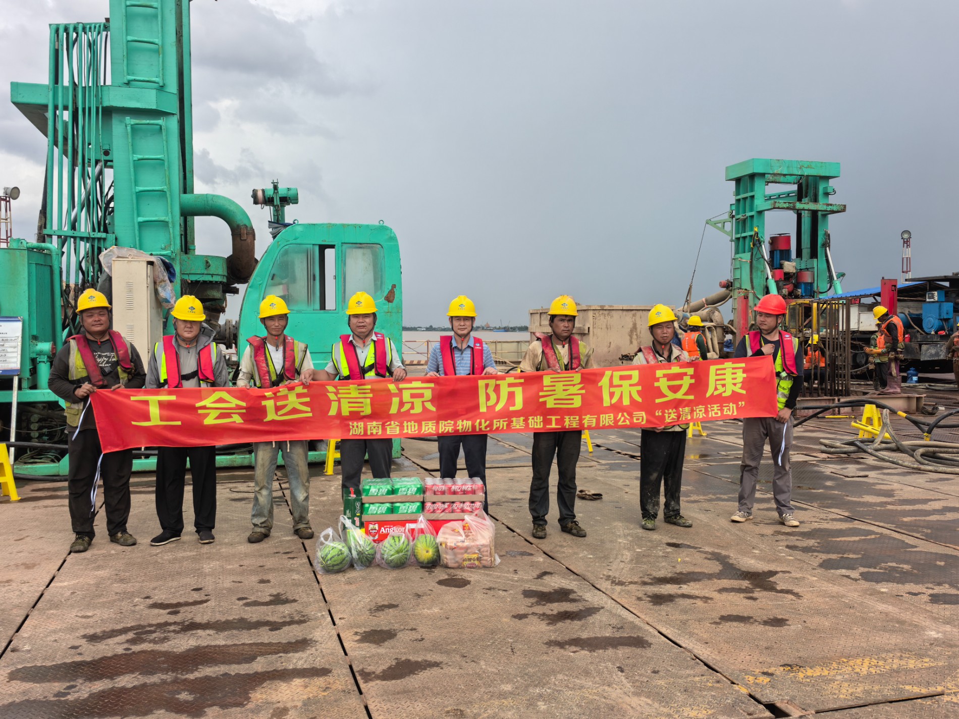 8月26日,,,,,兴发xf936公司副总司理刘城到柬埔寨湄公河大桥项目现场开展“送清凉”慰问运动,,,,,并对项目清静生产事情举行周全检查指导。。。。。。